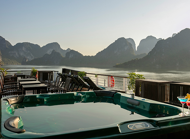 With the capacity of occupying up to 55 passengers, our Lily Restaurant is the combination of elegance, cozy and modern atmosphere with surround views of the incredible scenery. The Restaurant offers normal menu, vegetarian and Halal eaters in Vietnamese, Asian and European styles you will have chance to tasted a variety of great cuisines. With the talent of our chef, you special request of food will be well taken care of.
